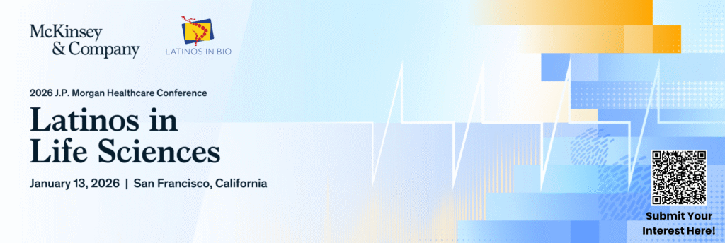 McKinsey & Company has invited Latinos in Bio members to a special gathering during JPM Conference Week, featuring insights from senior Latino leaders shaping the future of life sciences. The event includes a panel discussion moderated by Lucy Pérez (McKinsey & Company), followed by a networking reception. Submit Your Interest Here!